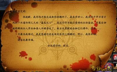 这封信是任务物品,要交给的人正是欧克的未婚妻、一直守候在史坎布雷城中的艾莉。如果不把这封信交给艾莉,艾莉就不会知道他所等待的欧克已经永远回不来了,而交给她,她便会伤心欲绝。因此,很多玩家在最后都把这封信留在了背包中。