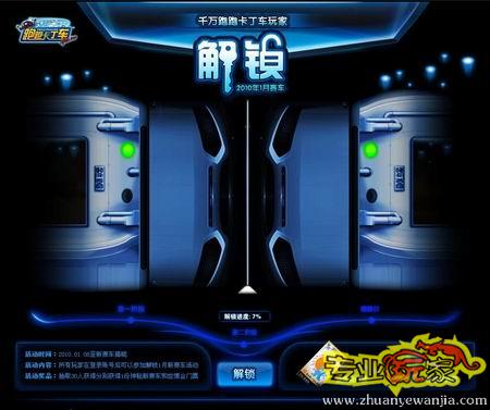登录活动页面,你将会看到“千万《跑跑卡丁车》玩家解锁20101月赛车”的字样,而页面正中就是一扇巨大的门,即将推出的神秘赛车就隐藏在门口!只要你登录世纪天成帐号,就能够参加解锁活动,点击按钮达到足够的人数之后,这扇大门就会开启揭晓车手们心中的悬念!但是,活动总共分为三个阶段,而每人每天只能启用一次解锁,所以一定要联合志同道合的朋友们一起,才能尽快看到神秘赛车的身影!当然,所有参与解锁活动的玩家们也将有机会活得一份特别的惊喜,直至新赛车揭晓前所有参与解锁的玩家中将会抽取30人获得这辆神秘的赛车和世博会门票!